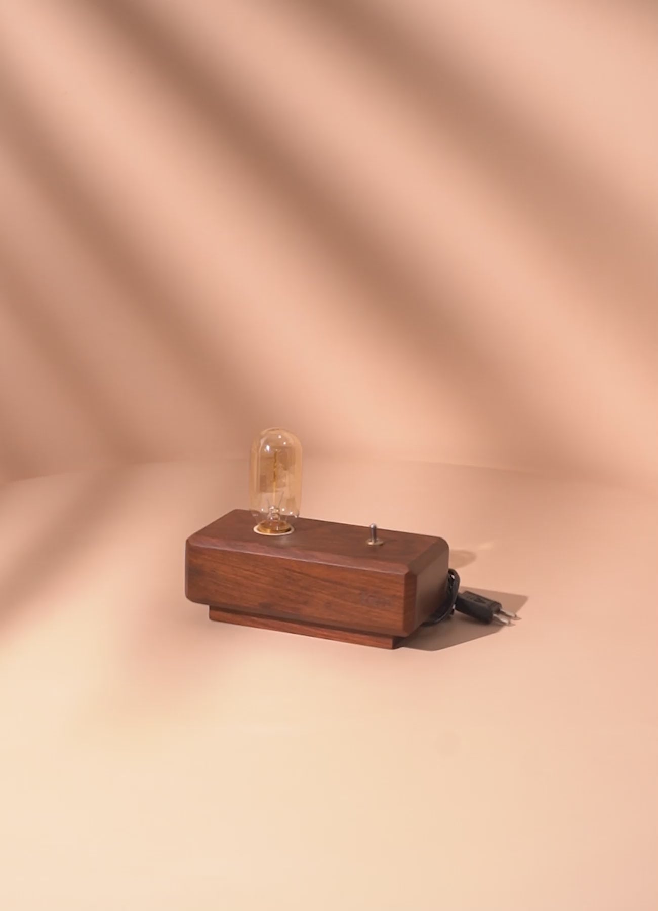 ADIA is a faceted solid wood desk lamp made from Indian Rosewood (Sheesham), designed to blend quiet luxury with everyday warmth. Its exposed Edison bulb casts a gentle, amber-toned glow; perfect for corners, consoles, or bedside settings. The retro toggle switch adds a touch of analogue charm, while the tapered form draws inspiration from the word ‘Adia,’ meaning diamond. With no shade, no clutter, and no harsh light, ADIA is all vibe, nothing to hide.